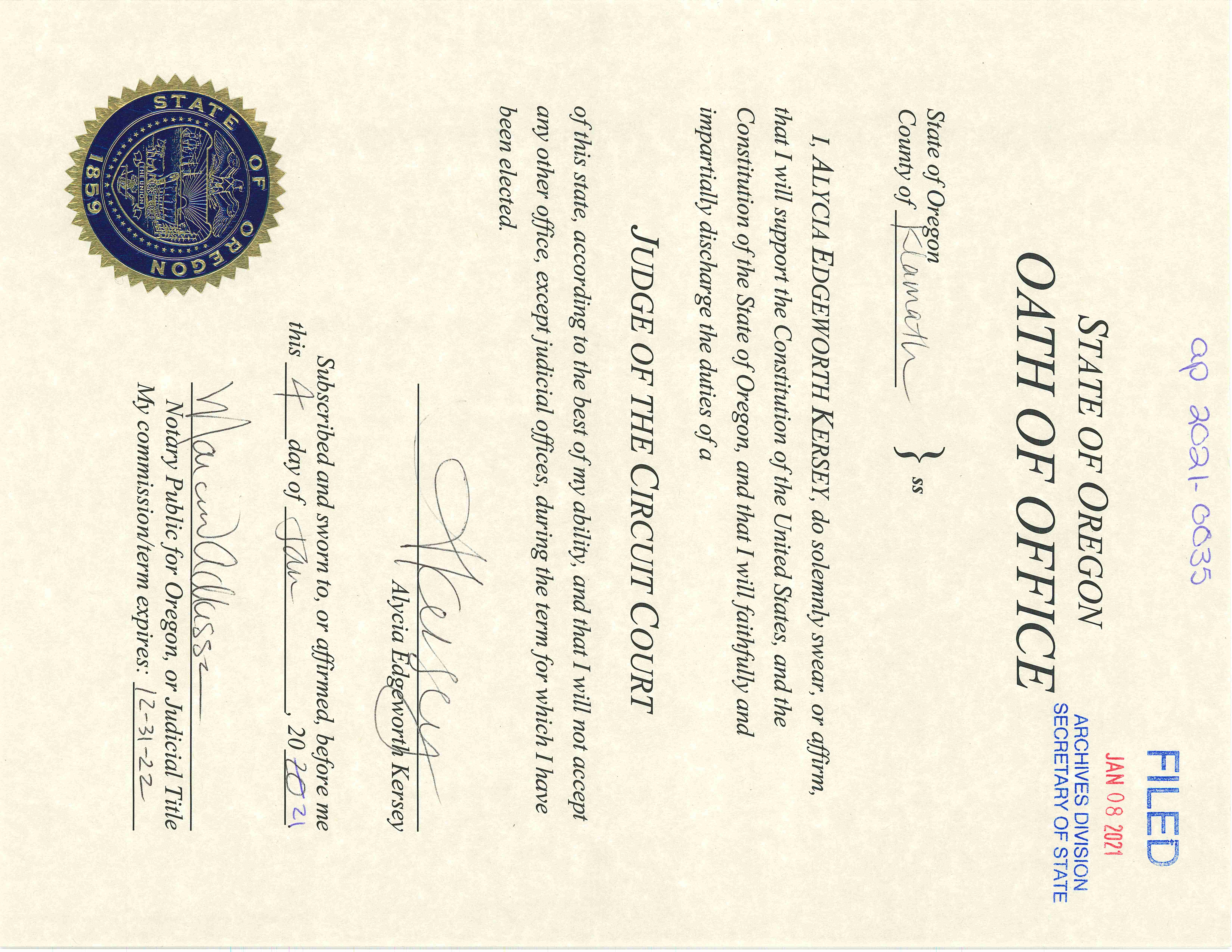 ''Friday, August 6, 2021 at 11:40:30 AM (GMT-07:00) NEEDHAM, Andrew H:'' 2021 Oaths of Office