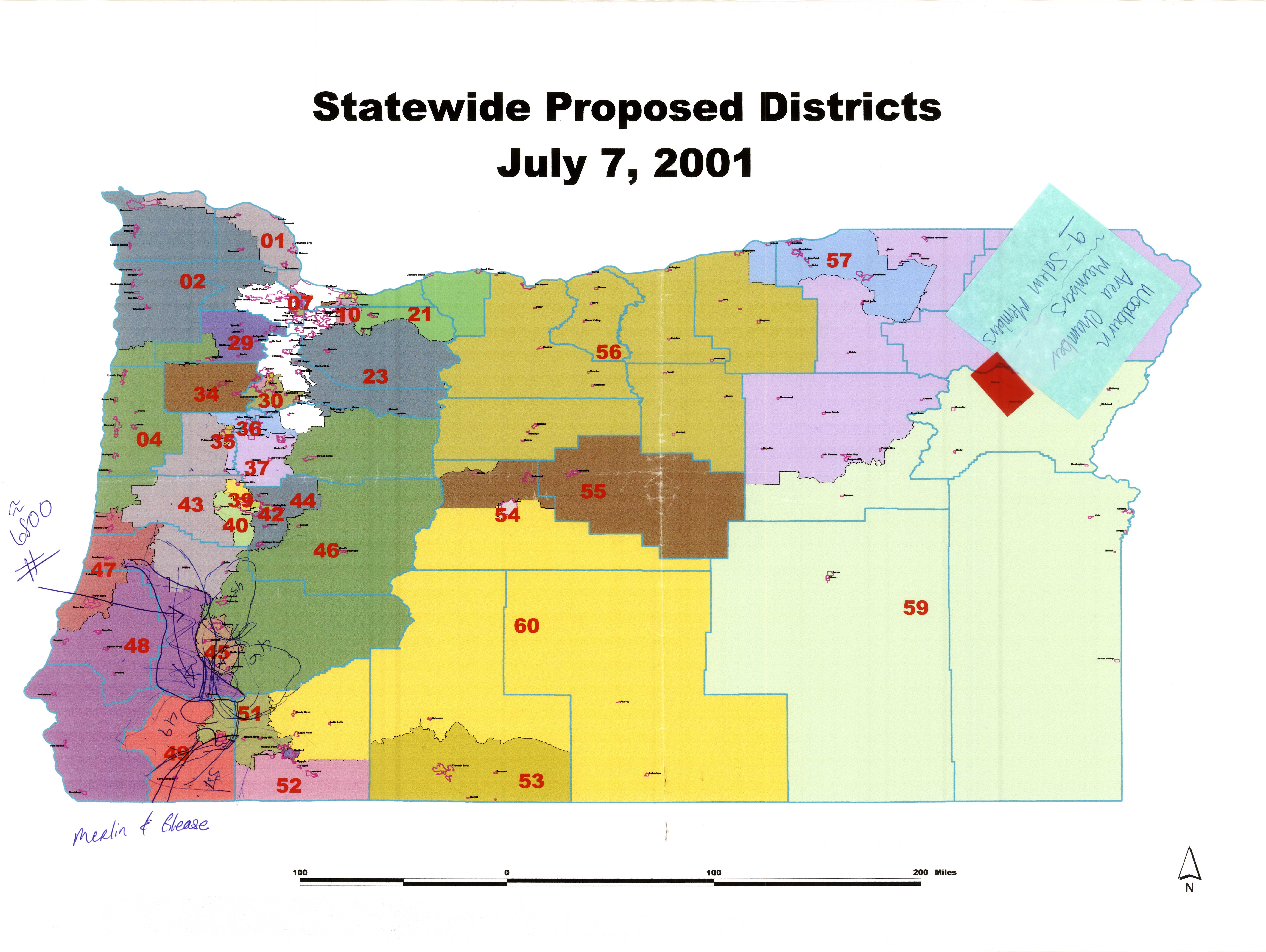 2001 Statewide Proposed Districts July 7 2001 with sticky note
